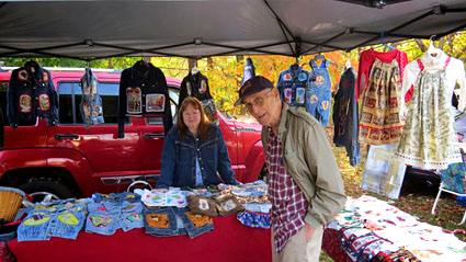 Sloatsburgers Alison Harvey and Harrison Bush, two good friends of Harmony Hall, took advantage of the great weekend weather and organized a fall edition of the popular signature Great Lawn Flea Market. Vendors, browsers and buyers gathered Saturday at Harmony Hall for the flea market, where tables of goods were spread with everything from hand sewn denim clothes and Sloatsburg related historical odds and ends to the homemade dessert delicacies of Auntie El’s.
